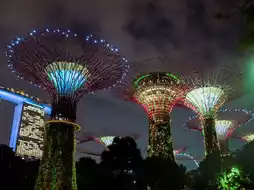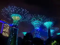 The Supertrees are towering vertical gardens that light up the night in a mesmerizing display.