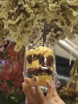What makes this space truly remarkable is its atmosphere. Enveloped in cascading greenery, delicate blooms, and warm wooden tones, it feels more like a secret garden than a café in the heart of the city. There’s a sense of serenity here—a quiet refuge where time slows, conversations flow effortlessly, and every visit feels like a brief escape from the urban rush.