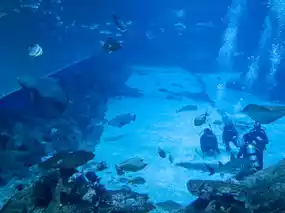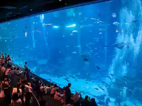 Step into an immersive marine world with huge panoramic tanks filled with vibrant fish, manta rays, and reef sharks swimming right before your eyes! The Open Ocean Habitat, with its massive viewing panel, is one of the best spots to sit and take in the beauty of the sea. ππ