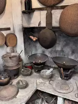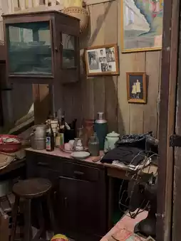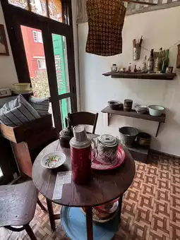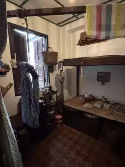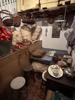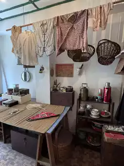 Upon entering the first floor, visitors are greeted by an evocative representation of a traditional tailor’s workshop. With its polished wooden furniture, antique sewing machines, and an array of sewing tools, the room captures the essence of craftsmanship from a bygone era. Further into the space, a communal kitchen offers a tangible sense of how residents once prepared their meals together, while a display of the old "night soil" toilet system provides a startling reminder of the humble plumbing systems once in place—used in some parts of the city as late as the 1980s.