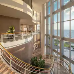 • The 32nd-floor executive lounge offers five dining services daily, with unlimited champagne all day.