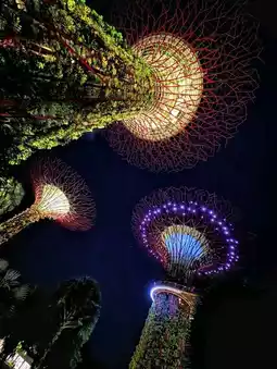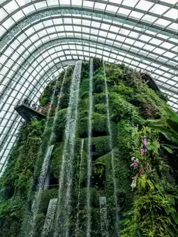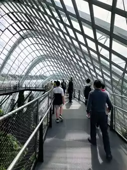 amazed by the Supertree Grove, Cloud Forest, and Flower Dome. The Supertrees, especially at night with the vibrant light show, absolutely a highlight! The Cloud Forest's indoor waterfall and misty walkways, along with the Flower Dome's diverse plant collections are both visually stunning and informative. Further more, I'm also praise its eco-friendly design, such as Supertrees' solar panels and rainwater collection systems.