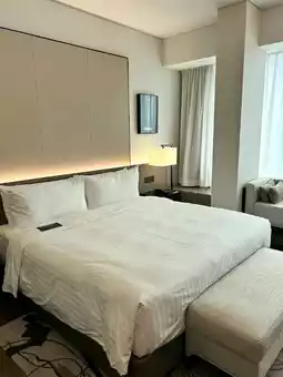 Ambience/Facilities: Modern luxury hotel, comfortable bedroom, rooftop swimming pool with city views, friendly and quiet for relaxing.