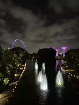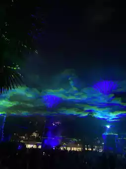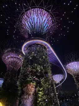 We chose to take the tram inside, then walked to Supertree Grove, the spot to watch the Garden Rhapsody light show, which is free to enter! The tip is to find a seat or lie down on the wide plaza, then look up to enjoy the perfectly synchronized light and music show. It’s truly breathtaking and immerses you in the amazing atmosphere.