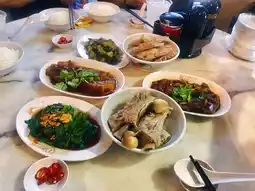 The restaurant offers a wide variety of menu items, but the Pork Ribs Soup is a must-try. It comes with generous portions of tender pork ribs that are easy to eat. The highlight is the flavorful soup, infused with garlic aroma and a spicy kick from white pepper.bFor those who prefer fattier cuts, go for the Prime Spare Ribs Soup—best enjoyed with steaming hot rice and a sip of the rich broth for a comforting meal. Other soup options include tenderloin pork soup, pig liver soup, and fish soup to suit different preferences.