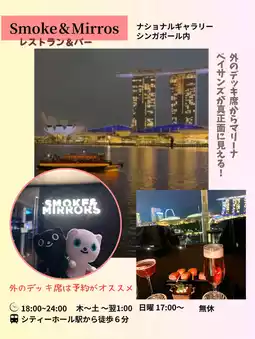 A restaurant bar on the 6th floor of the National Gallery, located right near City Hall Station, with a direct view of Marina Bay Sands✨