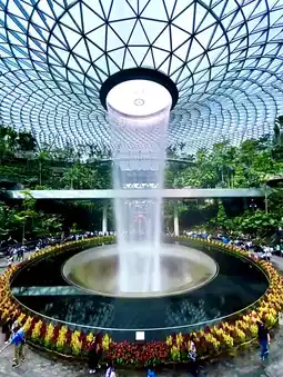 • Jewel Changi (9:00 AM - 11:30 AM): Upon arrival in Singapore, head straight to Jewel Changi. This is a comprehensive entertainment hub next to Changi Airport, featuring the spectacular 40-meter Rain Vortex. During the day, sunlight cascades over the layers of water curtains, creating a dreamlike scene; at night, the sound and light show begins, offering a magical visual feast. The Forest Valley houses over 2,000 trees and more than 100,000 shrubs from various countries. Stroll through and breathe in the fresh air. You can also challenge yourself on the 50-meter walking net and 250-meter bouncing net for some excitement.