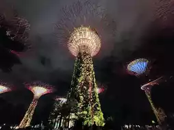 Supertree Light-Up The “Supertrees,” which can be called the symbol of Gardens by the Bay, are giant artificial trees ranging from 25 to 50 meters tall, illuminated against the night sky. These trees are beautiful when surrounded by greenery during the day, but at night they change into various colors, putting on a fantastic light show. You can enjoy Singapore’s night while walking through the light emitted by the trees.