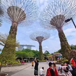 At 7 AM, Merlion Park was still free from tour groups, allowing me to enjoy the classic shot of the fountain lion with Marina Bay Sands in the morning light. Crossing the Helix Bridge into Gardens by the Bay, the Flower Dome’s desert roses and South African king proteas bloomed at a steady 23°C, while the Cloud Forest’s suspended walkway offered an "Avatar-style" adventure—my shirt dampened by the mist from the 35-meter artificial waterfall, and outside the glass dome, the CBD skyscrapers reflected a cold metallic sheen.
