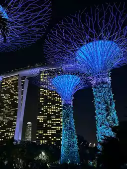 🔹 Gardens by the Bay — The futuristic “Supertrees” light up at night, and it also has the world’s largest indoor waterfall, truly breathtaking!