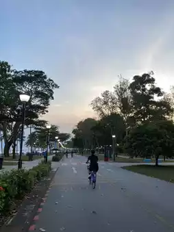 Having lived in Singapore and visited many parks, I think East Coast Park is the best place for a leisurely walk. Walking along the long trail by the sea, you suddenly feel your mind clear.