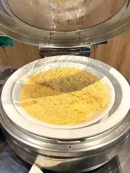 📍 Light meals & hot dishes: There were Singapore-style dishes (chicken rice-style rice, stir-fried items, etc.). Of course, bread and fruit are also available.