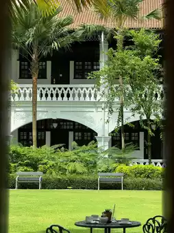 On this trip to Singapore, I made up for the regret of not staying at the Raffles Hotel last time. Raffles truly lives up to being a landmark building in Singapore. The architectural style is so distinctive, with an elegant and grand white exterior full of colonial charm. Walking into the lobby, you can immediately feel that luxurious atmosphere—it's absolutely amazing! The rooms are new and very clean. Upon check-in, we were given fruit and a Singapore Sling cocktail, along with a handwritten welcome card📑. The butler service is 24 hours and very enthusiastic. When I mentioned wanting to go to the Long Bar in the evening, he helped us make a reservation. The food is really delicious too. We had breakfast right next to the blue fountain⛲️, and luckily it was quiet in the morning. After eating, we took beautiful photos and checked in. I highly recommend the fried noodles for breakfast—they are very tasty! The service, from the doorman to the room service, is very thoughtful and attentive. Communication was done in both Chinese and English, so even those not good at English don’t need to worry; you can communicate in Chinese as well. The location and views are great, and transportation is convenient. #SingaporeHotels