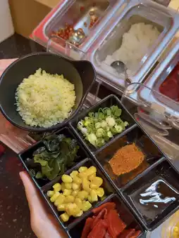 One of our favourite things at Tamoya is the free flow condiments station. You can help yourself to tempura bits, pickles, corn, garnishes, and more. It’s a nice little add-on that lets you customise your bowl the way you like it.