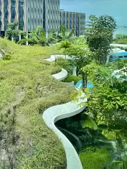 🏊♂️ Introducing the Village Hotel Sentosa, a resort hotel where the harmony of blue swimming pools and Singapore’s natural scenery is stunning! 💙 It’s fun to admire the hotel’s curved architectural beauty, and above all, swimming in the wide blue pool was pure healing! Be sure to visit if you go to Singapore!
