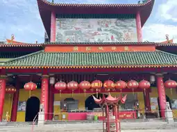 Besides the main shrine, this temple also has a large Guan Yin statue and a very beautiful pagoda. After leaving the shrine, walk to the right until you reach the pagoda. Walk up to the upper floor where the Guan Yin shrine is located.