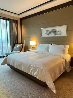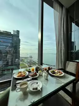 🏢🚇The hotel is situated in a busy business district but exudes understated luxury and grandeur. Besides convenient transportation, the hotel itself is very modern. The 32nd-floor lobby is stunning, and the lobby lounge afternoon tea is a perfect choice to enjoy delicious food and beautiful views. The hotel facilities are top-notch, with an infinity pool perfect for photos and a well-equipped gym. The service attitude is impeccable—warm and professional.