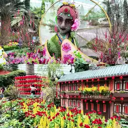 Surrounded by lush tropical plants, you can also see people offering prayers. Not only is it perfect for photos, but it’s also wrapped in a mysterious charm that makes you want to quietly put your hands together in prayer. The contrast between the colorful flowers and golden decorations is stunning, making this spot feel a little exotic even within Gardens by the Bay!