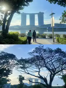Walking along Marina Bay was amazing, the breeze was cool, and the view was very grand.