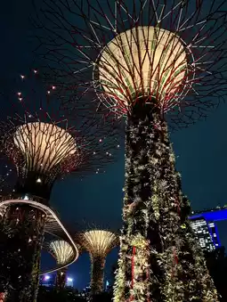 The view here is amazing, with Marina Bay Sands right in front and boats passing below. The atmosphere is so chill, and every photo looks beautiful. After that, we walked to Gardens by the Bay, a huge garden behind Marina Bay Sands.