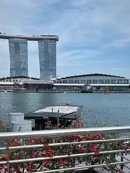 After taking enough photos, we walked to Esplanade, the durian-shaped theater (really!), and relaxed by the riverside, enjoying the beautiful city view and cool breeze — so soothing ☁️🍃