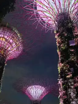 Supertree Grove at Gardens by the Bay is a beautiful spot that changes with the time of day. In the daytime, the Supertrees stand tall like giant flowers, their colors bright against the blue sky. We loved seeing the unique shapes and how the trees bring nature and art together. As the sun sets, the grove becomes even more magical. The Supertrees light up in colorful displays during the Garden Rhapsody show and the music makes it feel like a fairytale. Walking around at night, the lights sparkle and dance and everything feels calm and dreamy. Supertree Grove is truly amazing to see, both in the day and at night!