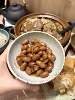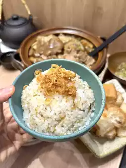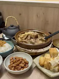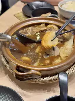 The meal comes with traditional sides like braised peanuts, salted vegetables, and crispy dough fritters—perfect for soaking up every bit of the delicious soup. For a twist, swap out plain rice for fragrant scallion rice, or refresh your palate with their cool barley or water chestnut drinks.