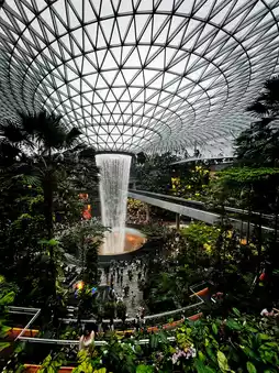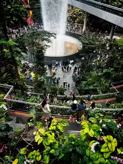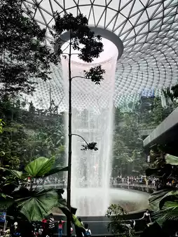 The Rain Vortex at Jewel Changi Airport is a stunning fusion of nature, architecture, and innovation. As the world’s tallest indoor waterfall, it plunges 40 meters through the heart of a lush indoor rainforest, creating a serene yet awe-inspiring atmosphere. By day, the cascading water offers a refreshing contrast to the bustling airport environment; by night, it transforms into a dazzling light and sound show. Surrounded by verdant gardens, walking trails, and world-class amenities, the Jewel Waterfall is more than just an attraction — it’s an experience that redefines what an airport can be. A must-see marvel for travelers and locals alike.