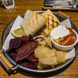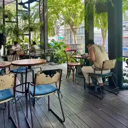 They have an amazing selection of drinks, both alcoholic and non-alcoholic, perfectly paired with delicious dishes. Perfect grilled salmon with the sauce. The vibe is super cozy, and the greenery makes it a perfect spot to chill.