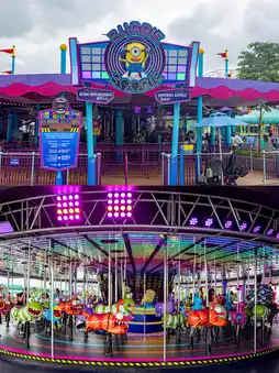 There are 3 rides in total. Starting with the first ride, Buggie Boogie, a super cute Minion carousel dancing to hit songs mixed by the Minions. Around it, there are cute photo spots📸.