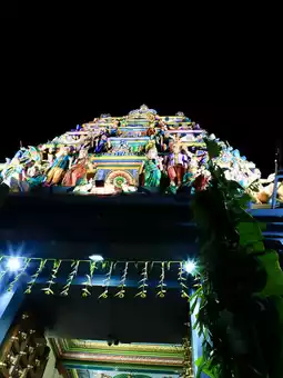 There are Chinese temple-like buildings, an Indian-style temple inside, gift shops, and food stalls everywhere, making it a great place to enjoy the night.