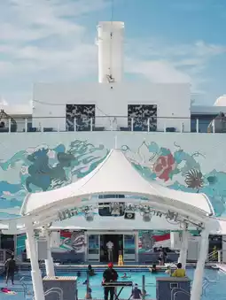 6 waterslides, pools, hot tubs, rock climbing, ropes course, zipline, stargazing movie nights — most of it free! So rare for cruises these days.