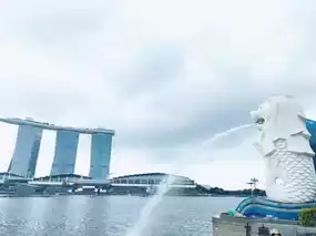 The view is spectacular, with modern architecture contrasting the classic Merlion fountain