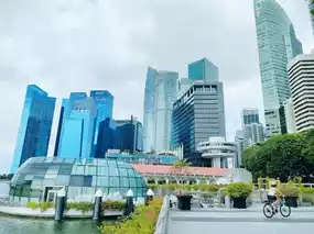 🏙️ Behind is Marina Bay Sands and a zone of beautiful futuristic blue office buildings
