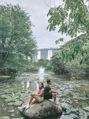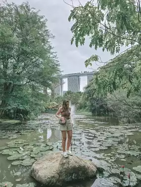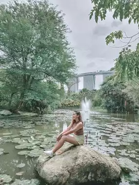 If you're heading to Gardens by the Bay and want something beyond the usual Supertree shots—this spot is a total hidden gem! 💎 This serene lily pond with a rock right in the middle is just chef's kiss for photos 🍃✨ Imagine lush greenery, floating lily pads, and a peaceful fountain in the background. Plus, you get a peek of Marina Bay Sands peeking through the trees—SO Insta-perfect! 😍📷
