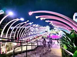 Sentosa Sensoryscape is a feast for the senses. Filled with various attractions like the Glow Garden filled with luminous flower-like lanterns that glow with different colors over time, Symphony Streams, where streams of water trickle down to give a soothing sensation, Scented Sphere where various fragrances fill the air, and Tactile Trellis, where curious textures can be explored. On the upper deck comes The Awakening of the Senseri, where every step brings about blossoms of art and light. And the finale, the illuminated Peranakan House, vibrant and bursting with colors especially during the light show where Peranakan Art bursts in a festival of colors. Truly something to include in your itinerary when visiting Sentosa.