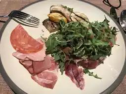 The antipasti spread was generous and high-quality—a fine selection of cheeses, cold cuts, fresh greens, breads, and a dessert table that tempted us before the main even arrived. But we couldn’t resist the Wagyu beef main, which turned out to be perfectly done medium rare and melt-in-the-mouth delicious.