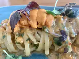 For mains, I had the linguine aglio olio with Hokkaido sea urchin, bottarga, and yuzu—a brilliant, dynamic dish. The yuzu brought brightness and cut through the natural richness of the uni, giving the dish a fresh, balanced finish. My wife’s Angus beef tenderloin was perfectly done (a lovely medium rare), and the miso beef jus added a rich umami depth that nodded to the chef’s Japanese roots. We ended the meal with a classic tiramisu that did not disappoint.