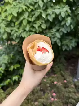 Crepe Endo is from Osaka and is known for its soft, freshly made crepes with delicate flavours. We tried the strawberry cream crepe — it was fresh, light, and had just the right amount of sweetness. The balance between the ripe strawberries and smooth cream was really pleasant, and the crepe itself was tender with slightly crisp edges.