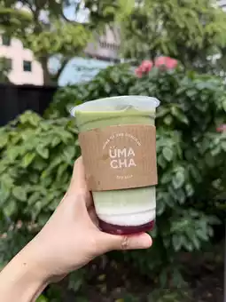 To go with that, we had the strawberry matcha latte from Umacha. The drink was smooth and subtly sweet, with a gentle mix of fruity and earthy notes that complemented the crepe nicely.