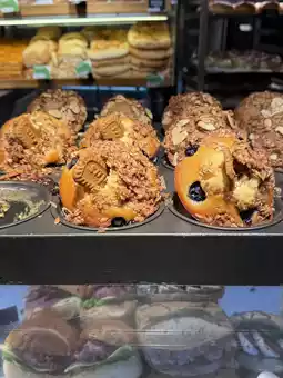 Their bakery section also features a selection of muffins and pastries. Freshly baked muffins come in flavours like blueberry, banana, and chocolate chips. For those with a sweet tooth, there are also brownies, bread pudding, and a rotating weekly cake special, such as cotton burnt cheesecake or walnut carrot cake.