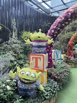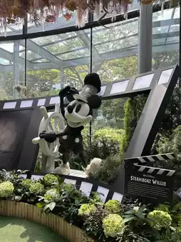 This is the Floral flower garden, an air-conditioned flower garden. This is our first time visiting because there is a Disney exhibition, so we had the chance to go in. We are big Disney fans and love Disney very much. The first thing you see before the entrance is a large Mickey welcoming you. Once inside, the first thing you notice is the beautiful flowers from start to finish. We are impressed by the creativity of the organizers who brought Disney characters to showcase, decorated with flowers. It's magnificent. They change the exhibitions here regularly, but we guarantee that anyone who loves the beauty of flowers must visit at least once.