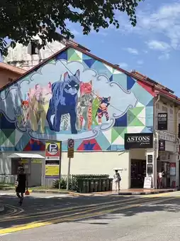 The highlight of this area is the Joo Chiat Peranakan houses, which are decorated in very cute colors with architecture that blends Chinese and Malay styles—perfect for photography.