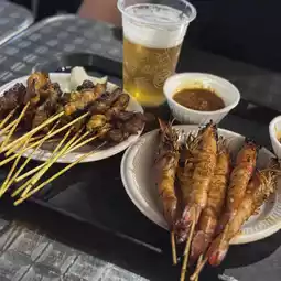 🦐 Grilled seafood is another must-try! Fresh shrimp and squid grilled right in front of you, juicy and full of smoky aroma. It's a carefully prepared street food.