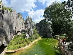 Explore towering man-made caves, hidden walkways, and tropical jungle trails.