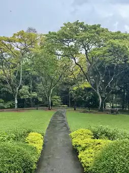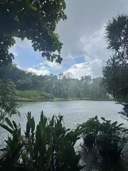 this place, featuring a large lake, walking trails, and an orchid garden,
