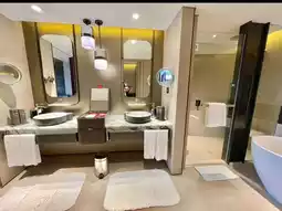 - The hotel is located above a shopping mall, so shopping is very convenient, and there are plenty of restaurants.