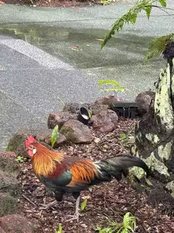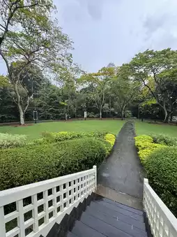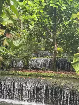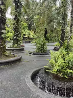 the large trees and tropical plants glisten more vividly, lightly soaked by the rain.