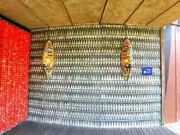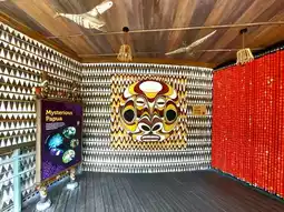 Walk into tribal themed pavilions with colorful designs to fully immerse yourself in the experience!