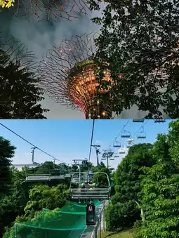 First, I went up to Marina Bay Sands to enjoy the panoramic view of Singapore. Then, I moved to Gardens by the Bay to explore the Supertree Grove, Cloud Forest, and Flower Dome, feeling as if I had entered a garden in a futuristic city. In the evening, the Supertree light show created a fantastic atmosphere.